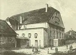 Farkas Street Theatre was a theatre in Kolozsvár in Hungary (now Cluj-Napoca, Romania), founded in 1821 and closed in 1906. It is known as the first permanent theatre building in Hungary, and played a pioneering role in the development of the professional theatre in Hungary. It also played a pioneering role in Hungarian Opera, and was an opera house in 1887–1896. It was the first of three theatres built in Hungary before the National Theatre (Budapest) in 1837. While the first Hungarian language professional theatre had been founded in 1789, Hungarian theatre consisted of travelling theatre companies until the foundation of the Farkas Street Theatre in 1821.