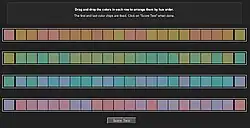The Farnsworth–Munsell 100 Hue Color Vision test is a color vision test often used to test for color blindness. The system was developed by Dean Farnsworth in the 1940s and it tests the ability to isolate and arrange minute differences in various color targets with constant value and chroma that cover all the visual hues described by the Munsell color system.[1] There are several variations of the test, one featuring 100 color hues and one featuring 15 color hues. Originally taken in an analog environment with physical hue tiles, the test is now taken from computer consoles. An accurate quantification of color vision accuracy is particularly important to designers, photographers and colorists, who all rely on accurate color vision to produce quality content.
