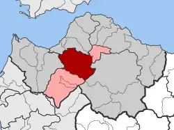 Farres (Greek: Φαρρές) is a former municipality in Achaea, West Greece, Greece. Since the 2011 local government reform, it is part of the municipality Erymanthos, of which it is a municipal unit.[2] The municipal unit has an area of 241.848 km2.[3] The municipality of Farres existed between 1835 and 1912, and again between 1998 and 2011. Its seat of administration was in the town Chalandritsa. Farres is situated in the centre of Achaea, on the upper courses of the rivers Peiros and Parapeiros. Towards the southeast (Mount Erymanthos) and northeast (Panachaiko) the terrain is increasingly mountainous. It is located about 15 km south of Patras and 30 km west of Kalavryta. The Greek National Road 33 (Patras - Tripoli) runs through western Farres.