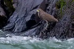 The fasciated tiger heron is found primarily in foothills, along rocky, quickly-moving streams.[11] Its range extends from Costa Rica through northwestern Argentina, southeastern Brazil, and Guyana; it has been recorded as a vagrant in Nicaragua.[1][10] Although it occurs from sea level to 2,400 ft (730 m),[12] it is generally found at higher elevations than the rufescent tiger heron where the two species occur together.[13]