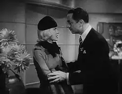 With this film, Warner Bros. chief Jack L. Warner tried to change Bette Davis' screen persona by putting her in a platinum blonde wig and false eyelashes and dressing her in glamorous costumes. The actress, who had been trying to convince the studio head to loan her to RKO so she could portray slatternly waitress Mildred Rogers in Of Human Bondage, was appalled at the transformation, complaining they were trying to turn her into Greta Garbo.[4] In an interview with Photoplay editor Kathryn Dougherty, she complained, "I can't get out of these awful ruts. They just won't take me seriously. Look at me in this picture all done up like a third-rate imitation of the MGM glamour queens. That isn't me. I'll never be a clothes horse or romantic symbol."[5] To Gerald Clarke of Time she lamented, "I looked like somebody dressed up in mother's clothes. But it was a great break because I learned from the experience. I'll never let them do that to me again. Ever!"[6]