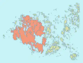 Fasta Åland (Finnish: Manner-Ahvenanmaa or Ahvenanmanner, meaning mainland Åland) is the largest and most populous island of Åland, an autonomous province of Finland. The island is home to the provincial capital Mariehamn. About ninety percent of the archipelago's population lives on Fasta Åland.[1] Its area is difficult to estimate due to its irregular shape and coastline, but estimates range from 740 square kilometres (290 sq mi)[2] to 879 square kilometres (339 sq mi)[3] to over 1,010 square kilometres (390 sq mi), depending on what is included or excluded. Even at the minimum estimate, Fasta Åland is Finland's largest and most populous island, with about 27,000 people. Its highest point is 129 metres (423 feet).