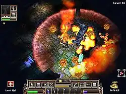 Fate is a fantasy action role-playing game. This type of game is also known as a dungeon crawler, in which the player takes their character through progressively difficult levels of a dungeon, fighting monsters, completing quests, collecting valuable items and gold, and improving the character's attributes and skills along the way. The dungeon in Fate has a randomized layout for each level; treasures found within each level are randomized, as are the number and type of monsters. Fate is rendered fully in 3D, allowing the player to zoom in and out of the action as necessary; however, the camera can only be rotated selectively.