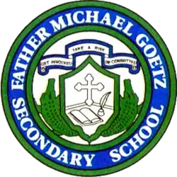 Father Michael Goetz Secondary School (sometimes referred to as Goetz or abbreviated as FMG; Goetz pronounced as "Gates") is a Catholic school located in Mississauga, Ontario, Canada. Founded by Ed King, it was established in 1987 (in its original location on Hollymount Drive) and in 1990 moved to the south of the city centre. The school was named after King's friend, Father Michael Goetz.[2] Father Michael Goetz is the closest high school to the city centre. Father Michael Goetz is known for its exceptional sports teams, as well as the city's best technological education programs, including computer science, computer engineering, construction technology and automotive technology. Father Michael Goetz offers two SHSM (Specialist High Skills Major) programs, one for Information and Communications Technology (ICT) and the other for Arts and Culture.