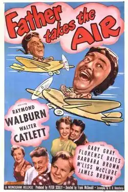 Father Takes the Air is a 1951 American comedy film directed by Frank McDonald and written by D.D. Beauchamp. The film stars Raymond Walburn, Walter Catlett, Gary Gray, Florence Bates, Barbara Brown, M'liss McClure and James Brown. The film was released on June 17, 1951 by Monogram Pictures.[1][2][3]