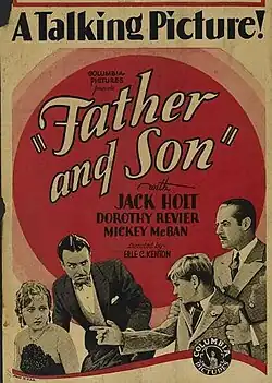 Father and Son is a 1929 American sound part-talkie pre-Code drama film directed by Erle C. Kenton from a story by Elmer Harris. In addition to sequences with audible dialogue or talking sequences, the film features a synchronized musical score and sound effects along with English intertitles. The sound was recorded via the Western Electric sound-on-film process. The film was produced by Harry Cohn for Columbia Pictures.[2]