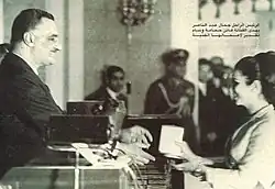 Tributes soon poured in from across the film industry following her death, as well as from government figures. Egyptian president Abdel Fattah el-Sisi, who was on a visit abroad, mourned her death and sent an envoy to her funeral, while a statement from his office described her as a person of "high creative value." "She will remain a symbol of the genuine Egyptian art and commitment to its ethics," the statement added.[28][29] The Ministry of Culture ordered a two-day period of mourning and a halt in all artistic activity.[30] Secretary-General of the Arab League, Nabil el-Arabi, called her a "symbol of refined Egyptian and Arab art".[29] The country's dailies gave her prominence in their front pages, with newspaper Al-Akhbar displaying "Farewell to the Lady of the Arabic Screen" as a headline.[28]