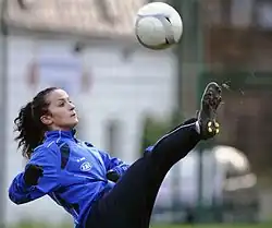 Fatmire "Lira" Alushi (née Bajramaj; born 1 April 1988) is a German former professional footballer who played as an attacking midfielder for the Germany women's national team. She placed third in 2010 FIFA Ballon d'Or competition, an annual award given to the world's best player.[3]