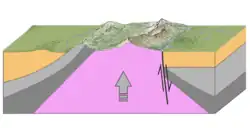 The name core mountains is derived from the structural element, resistant crystalline basement rocks, preserved in the core of horsts, often forming the highest peaks of the mountains.