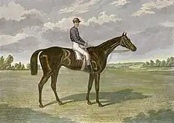 Favonius (1868–1877) was a British Thoroughbred racehorse and sire. In a career that lasted from 1871 to 1873, he ran ten times and won five races. In June 1871 he won The Derby on his second racecourse appearance. He went on to prove himself a top class stayer, winning the Goodwood Cup in 1872. Favonius was regarded by contemporary observers as one of the best English-trained horses of his era. At the end of the 1873 season he was retired to stud but had little chance to make an impact as a stallion before his death four years later. Favonius’s Derby win was one of the highlights of what became known as “The Baron’s Year”, in which his owner, Baron Meyer de Rothschild won four of the five British Classic Races.