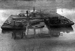 On February 18, 1908, it was reported that Favorite had been raised.[11] While the cause of the accident had not been determined by then, it was supposed that somehow the gunwale of the steamer had been caught under the beams supporting wharf floor, and as the river rose, the vessel was trapped and pushed under the water.[11] Favorite had sunk on a Friday, but with the use of jackscrews, and the aid of the tug Triumph and a scow, by Sunday evening, Favorite had been raised sufficiently high above the water for a fire to be raised in the boiler.[11] It was estimated that Favorite could be returned to service within a few days after repairs could be effected.[11]