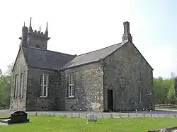 John Moutray married the Erskine heiress of Favour Royal, and the original house was built by them in 1670.[4] In 1816 the Moutrays briefly employed a local boy, John Hughes, as an apprentice gardener - Hughes would go on to become the Catholic Archbishop of New York in 1842.[5] The old house was destroyed in 1823 by an accidental fire, and was replaced with a larger structure by Captain John Corry Moutray of Castle Coole.[3] Captain Moutray commissioned the architect John Hargrave to design the new building, which was completed in 1825 in a Tudor Revival style. Captain Moutray also commissioned the building of a private chapel on the estate, consecrated on 3 July 1835, which is now the parish church of St Mary's, Portclare.[4] Favour Royal continued to be the family home of the Moutrays until 1976, when the house, demesne and contents were sold. It was occupied until the 1990s but is now derelict.[4]