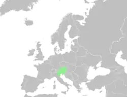 The plant is endemic to Austria, northern Italy (Friuli–Venezia Giulia and Veneto), and Slovenia.[6] It grows most readily in limestone crevices in the Julian, Kamnik–Savinja Alps and the Peca Mountain,[7] as well as in the dolomitic Alps of Italy and Austria.[8] A white-flowered form of C. zoysii, called Lismore Ice[9] was cultured from seeds harvested in the Julian Alps. The plant is much more compact in growth than its purple form. It is also slower growing and has smaller leaves, the tips of which are yellow.