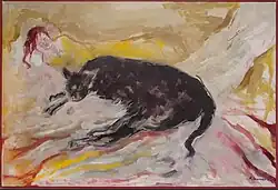 In addition to portraits, she created abstractions, still lifes, and landscapes. She was best known for her "Zayde" series, paintings created from sketches her father did for her daughter based on stories her daughter, then three, made up for him. They were first exhibited in 1971 at the Becket Arts Center, Massachusetts. They were compared to the works of Paul Klee, include fanciful figures and places.[3]