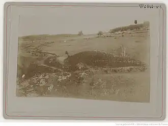 According to the researcher Coste ("Supplément au monument druidique de Tuniac"),[4] a burial mound, known as the Dissard's tumulus, located 1 km south away from the center of the village, contained the rests of the druidic chef and his Celtic supporters chased by the army of Marcus Licinius Crassus. The site had been a high place of veneration for the locals.[5] Other researchers argue that the whole legend is a fake.[6]
