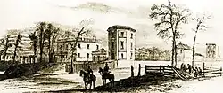 The cornerstone for the Arsenal was laid April 9, 1838. It was constructed of brick and stone and at each of the four corners of its massive walls was an octagonal tower. Entry into the Arsenal was controlled by use of massive iron gates. Workshops, quarters and other buildings in the Arsenal were constructed of brick and wood.