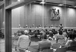 The court consists of two senates, each of which has eight members, headed by a senate chairperson. The members of each senate are allocated to three chambers for hearings in constitutional complaint and single regulation control cases. Each chamber consists of three judges, so each senate chair is at the same time a member of two chambers. The court publishes selected decisions on its website[7] and since 1996 a public relations department promotes selected decisions with press releases.[8]