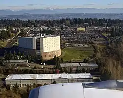 The Federal Detention Center, SeaTac (FDC SeaTac) is a prison operated by the Federal Bureau of Prisons. It is located in SeaTac, Washington, near the Seattle–Tacoma International Airport,[3] 12 miles (19 km) south of downtown Seattle and 16 miles (26 km) north of Tacoma, 1 mile (2 km) west of the 200th Street exit at the Interstate 5. The facility is also adjacent to the Angle Lake light rail station.[4]