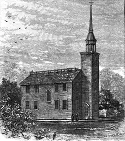 The congregation began as a group of Scots-Irish Calvinists gathered in a converted barn on Long Lane in Boston on November 15, 1729. The inhospitable residents of Boston dubbed them derogatorily as "The Church of the Presbyterian Strangers", and the name stuck. "Their first house of worship was a barn, which sufficed until they were able, in 1744, to build a neat wooden edifice. Governor Hancock presented the bell and vane which had belonged to the Old Brattle Street Meeting-house."[2] "The Presbyterian was exchanged for the Congregational form of government, by a unanimous vote, August 6, 1786.[3]