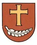 The Federer family originates in the 16th century from the village of Berneck, St. Gallen in northeastern Switzerland, near the Austrian border.[1] As part of the Swiss bourgeoisie, members of the family were entitled to positions in the local government. The name Federer translates from the Swiss German word for "feather" or "quill", referencing the family's role as scribes in Berneck.[1][2] In 1544, Ulrich Federer served as the Ammann of Berneck for the Prince-Abbots of St. Gallen.[3] Sebastian Federer served as Ammann in 1665.[3][4] The Federer family coat of arms includes a gold cross atop a white feather on a red shield.[5]