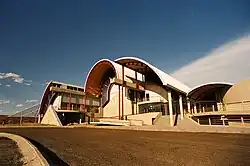 John Haskell, architectural critic, writing in The Sydney Morning Herald, has described this contribution as "conferred a distinctive visual identity on North Sydney...and...refreshingly free of fads and fashion". The Civic Centre project started modestly; repairing a vacant site next to the Council Chambers, providing a dedicated park and other community facilities. Later the distinctive Civic Centre Offices and Library[8] were built. Around that time, progressively, seven major new buildings were designed and constructed, at North Sydney Oval.[9] The spaces underneath the new stands were used for income-producing activities, including, a colonnade of shops, office space, function rooms and child care centre. Creative modern use of steelwork featured strongly in these buildings, as it would in many other Bouman designs. A child-care centre project in Crows Nest[10] was another innovative project, which has an earth/grass covered roof, publicly accessible and contributes to parkland in the area. It is very energy efficient.[11]
