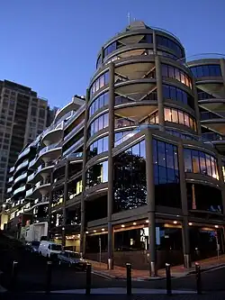A landmark building at the northern edge of Sydney Harbour, diagonally opposite the Sydney Opera House. It is now part of an adjacent group of three buildings, all designed by Feiko Bouman.[14] Professor Laszlo Kollar has commented ...” the proposal Quadrant, Milsons Point, follows a timeless theme of architecture which is the transformation of the square on the ground into the circle in the sky. This “marriage” between the square and the circle is the theme of a great number of mankind’s most significant buildings in the East and West...a remarkable contemporary example"[15]