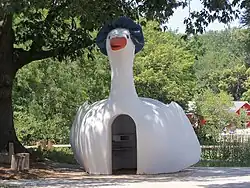 A municipal zoo was added to the park in 1909.[7] It became known as Mother Goose Land. Patrons would enter the zoo through a large Mother Goose structure. There was also a feature called Monkey Island. The Mother Goose entryway was listed on the Davenport Register of Historic Properties in 2007[1] and the zoo itself closed in 2008.