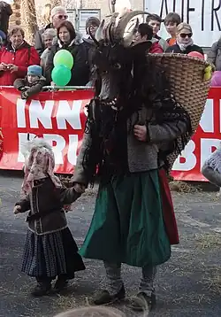 The Kornstier ("corn bull") is a cattle-shaped corn spirit.[6] At Christmas the bull fertilizes the fruit tree.[8] In spring the Kornstier is called Aprilochse ("April ox") or Maiochse ("May ox").[17]