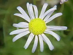 Felicia bergeriana is a richly branching, hairy annual plant of up to 25 cm (10 in) high that is assigned to the family Asteraceae. It has opposite leaves and flower heads set individually on up to 8 cm (3+1⁄5 in) long stalks, that consist of an involucre of about 1⁄2 cm (1⁄5 in) diameter with two whorls of bracts, about twelve blue ray florets surrounding more yellow disc florets. It is sometimes called kingfisher daisy in English. It can be found in the Northern and Western Cape provinces of South Africa.[2] It is sometimes cultivated as an ornamental.