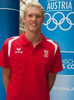 Felix Otto Auböck (also spelled Auboeck, born 19 December 1996) is a retired Austrian swimmer. Felix is the current World Champion in the 400 metre freestyle short course as well as a three time Olympic Finalist, including a 4th Place finish at the 2020 Tokyo Olympics. Previously He competed in the men's 400 metre freestyle event at the 2016 Summer Olympics.[1] In 2019, he competed in three events at the 2019 World Aquatics Championships held in Gwangju, South Korea.[2]
