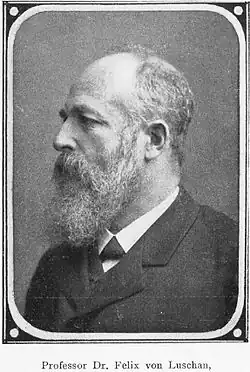 Felix Ritter[1] von Luschan (German pronunciation: [ˈfeːlɪks ˈʁɪtɐ fɔn ˈlʊʃan]; 11 August 1854 – 7 February 1924) was a medical doctor, anthropologist, explorer, archaeologist and ethnographer born in the Austrian Empire.