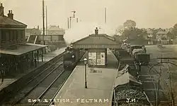 Feltham railway station serves Feltham in the London Borough of Hounslow, west London. It was opened on 22 August 1848 by the Windsor, Staines and South Western Railway (later the London and South Western Railway).