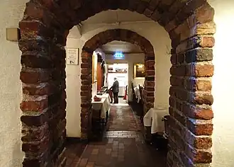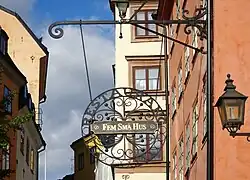 Fem små hus (Swedish for "five small houses") is a classic restaurant in Gamla stan in central Stockholm, Sweden, located in the Python block in the corner of Nygränd 10 and Österlånggatan 15. The restaurant serves traditional Swedish cuisine with a French influence. In winter the restaurant is only open on evenings but in summer it also serves lunch.[1]