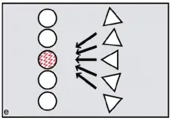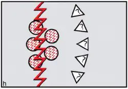 The FCC model predicts the specific form of reverse dominance display needed by female coalitions resisting would-be dominant or philanderer males. Females needed to signal 'No' by constructing themselves as inviolable using red ocher pigments. To assert ritual power, they needed to go periodically on 'sex strike'.[34] To defend themselves physically against harassment by non-kin males, defiant females needed to draw on the support of male kin—sons and brothers—as members of their reverse dominance coalitions. In order to reverse signals of sexual availability, it was logical to sing and dance an unmistakable message: 'Wrong species, wrong sex, wrong time!'. On this basis, FCC theory leads us to expect 'divine' or 'totemic' spiritual entities depicted in early rock art to be therianthropic ('wrong species'), sex-ambivalent ('wrong sex') and blood-red ('wrong time') (figure h).[35][36]