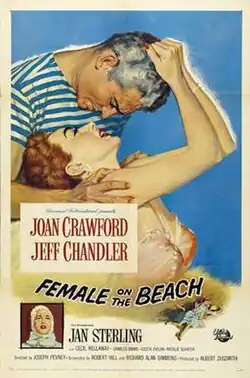 Female on the Beach is a 1955 American crime-drama film directed by Joseph Pevney starring Joan Crawford and Jeff Chandler in a story about a wealthy widow and her beach bum lover. The screenplay by Robert Hill and Richard Alan Simmons was based on the play The Besieged Heart by Robert Hill. The film was produced by Albert Zugsmith.[1][2]