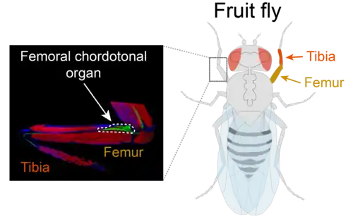 - ^ Shanbhag, Shubha R.; Singh, Kusum; Naresh Singh, R. (1992-10-01). "Ultrastructure of the femoral chordotonal organs and their novel synaptic organization in the legs of Drosophila melanogaster Meigen (Diptera : Drosophilidae)". International Journal of Insect Morphology and Embryology. 21 (4): 311–322. doi:10.1016/0020-7322(92)90026-J. ISSN 0020-7322.