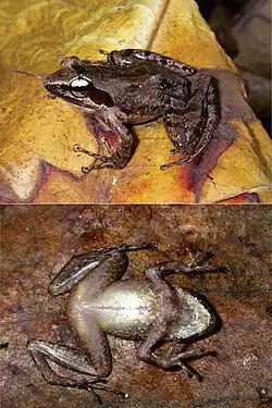 - ^ Biju, S.D.; Bocxlaer, Ines Van; Mahony, Stephen; Dinesh, K.P.; Radhakrishnan, C.; Zachariah, Anil; Giri, Varad; Bossuyt, Franky (2011). "A taxonomic review of the night frog genus Nyctibatrachus Boulenger, 1882 in the Western Ghats, India (Anura: Nyctibatrachidae) with description of twelve new species". Zootaxa. 3029 (1): 49–52. doi:10.11646/zootaxa.3029.1.1.
