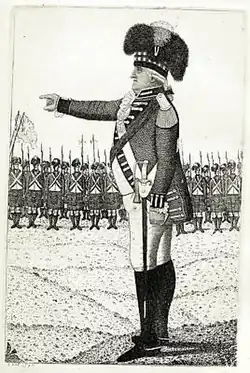 Engraved portrait of Sir James Grant with a view the Strathspey Grant Fencibles