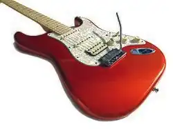The entire range came with options such as solid tonewood bodies made from alder or ash, chrome or gold-plated hardware, aged plastic parts, Noiseless pickups, abalone shell dot position fingerboard inlays, a dark aluminum "spaghetti" decal,[3] 22-fret maple necks featuring rosewood, maple or ebony fretboards, quilted or flamed maple tops, rolled fingerboard edges, Fender S-1 switching,[4] highly detailed nut and fret work, a bound top with contoured back on Telecasters, a two-point synchronized tremolo with pop-in arm,[5] LSR roller nut[6] on the HSS model Stratocaster, and staggered locking tuning machines[7] on certain models.