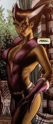 Feral (Maria Callasantos) is a character appearing in American comic books published by Marvel Comics. Created by Rob Liefeld and Fabian Nicieza, she first appeared in The New Mutants #99 (March 1991). Feral belongs to the subspecies of humans called mutants who are born with superhuman abilities. She has feline features and superhuman attributes and most often appears in the X-Men family of books. Feral has been both a protagonist and an antagonist at various points in her history. She is a founding member of X-Force and has also been affiliated with the Morlocks, the Mutant Liberation Front, and the New Hellions.