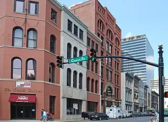 It was once the largest retail shoe store in the South,[42] and earned a reputation as the premiere footwear store in downtown Nashville.[40] The most up-to-date electric lighting and holophone reflectors provided lighting for the store. Its front window displayed shoes on revolving pedestals. The inside walls were marble lined, and inlaid mirrors ran along the back wall.[40]