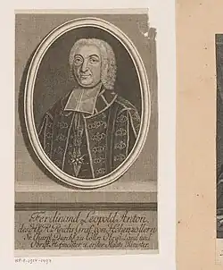 Anton Ferdinand Leopold, Count of Hohenzollern-Sigmaringen (also known as Count of Hohenzollern-Haigerloch; 4 December 1692 – 23 July 1750) was a German nobleman. He was a various times canon of different cathedral chapters and first minister of the Electorate of Cologne under Elector Clemens August. From 1702 until his death, he was the ruling Count of Hohenzollern-Haigerloch.