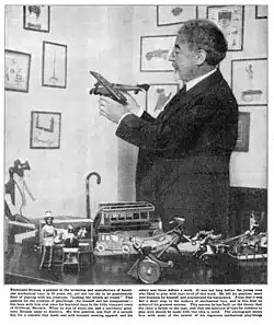 By 1914, he had four toy shops in New York and a manufacturing facility in Newark. As a pioneer in the friction power tin toy industry, the company would soon produce various clockwork or wind-up toys that were distributed by the Strauss Stores and other contemporaneous merchants.