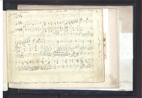 The institution that preserves the greatest number of his autographs is the Conservatory Luigi Cherubini in Florence followed by the Palatina Library in Parma, and the Royal Conservatory of Music in Brussels. In Brussels, at the Royal Library of Belgium, you can also find the autograph of the third quartet, which Giorgetti dedicated to Fétis. The autograph of the Ouverture I, dated 1840 and dedicated to Poniatowski, was found by the pianist Gregorio Nardi in Florence and today is looked after in his private Florentine archive. The Pacini Collection of the Carlo Magnani Library in Pescia, and the Conservatories of Brussels and Florence all look after an autographed copy of Dies Irae, the only piece that remains of the Messa da Requiem which Giorgetti dedicated to Giovanni Pacini in 1843: on the frontispiece of these documents, there is a note from the composer which indicated how counterfeit copies are made lacking his autograph.[18] The Philharmonic Academy of Bologna preserves the autograph of the Gran quintetto, at one time dedicated by Giorgetti to the librarian Masseangelo Masseangeli, then published by Ricordi in 1847 and rededicated first to the students and then to Poniatowski. The Greggiati Collection in Ostiglia contains the autograph of the Ave Maria, op. 35 in a version arranged for orchestra (the autograph of the original version for piano, harp or quartet is at the Conservatory of Florence). The autograph of the seventh quartet for strings was only recently discovered at Carnegie Mellon University in Pittsburgh.[2][19]