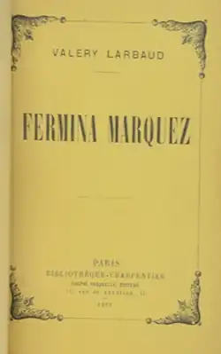 Fermina Márquez is a short novel in twenty chapters written by French writer Valery Larbaud. It was considered for the Prix Goncourt in 1911 but did not win. Nonetheless, it is still considered to be a minor classic of French literature and one of Larbaud's best known works along with his Diary of A.O. Barnabooth.