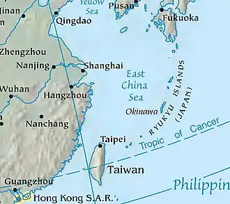 Although the local Canton officials watched the Portuguese and their ships closely, once the provincial authorities arrived at Canton they greeted the Portuguese with a warm reception, providing them comfortable lodgings and had their trade goods brought ashore.[15] The Chinese became suspicious once again of Andrade, this time for being a spy, when he sent a ship along the Fujian coast to look for further trade prospects, but he left a good impression when he gave the order that any locals who might be harmed by a Portuguese should seek him for redress.[15] Besides exploring Fujian, Andrade sent one of his captains named Jorge de Mascarenhas to explore the Ryukyu Islands after he heard of their beauty while stationed in Malacca.[16]