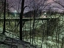 ![]() Fern Hollow Bridge viewed through trees, three weeks before collapse (Jan 7, 2022) | |