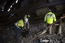 Shortly after the collapse, the National Transportation Safety Board announced it was sending a team led by Chair Jennifer Homendy to investigate the cause.[31][38] According to Homendy, the investigation would take 12 to 18 months to complete; the team began gathering evidence after their arrival on January 28.[17] In a January 29 press conference held after the first complete day on-site, Homendy stated a preliminary report would be available in approximately 10 days, but the final report would require "a long, technical investigation" reviewing bridge inspection reports and maintenance records, video (from local businesses and the PRT bus), traffic counts, weight requirements, and road treatments.[39]