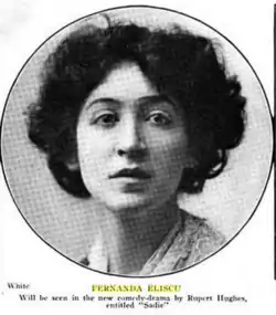 In 1909, the Los Angeles Times theatre critic raved about Eliscu, assuring readers that "If the name of Fernanda Eliscu is not inscribed high in the records of dramatic accomplishment during the next ten years, it will be because either dramatic accomplishment or Fernanda Eliscu has ceased to exist."[10]