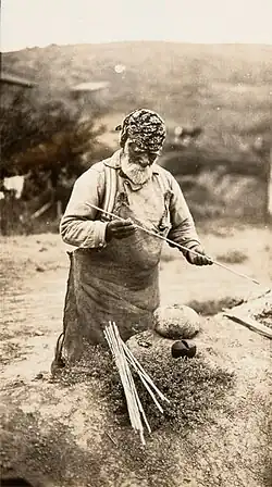 Beginning in 1912, he worked extensively with John Peabody Harrington to record his vast knowledge, stories, and memories.[2] This included accounts of Indigenous experiences throughout the missions, such as stories of resistance against mission authority and sexual abuse experienced by Indigenous women at the monjeríos that had been passed onto him by others.[8] He also recorded much knowledge on the craft specialist group Brotherhood of the Canoe and information on Chumash watercraft.[9]